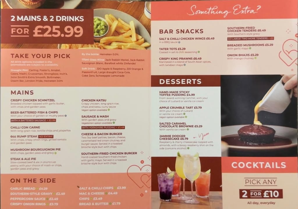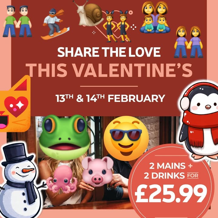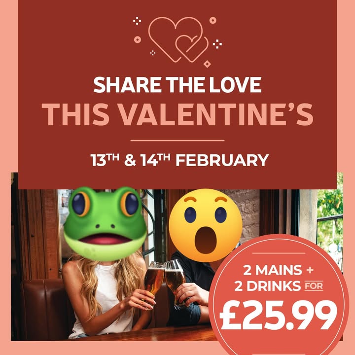 Treat yourselves this Valentine’s Day with Two Mains & Two Drinks for £25.99