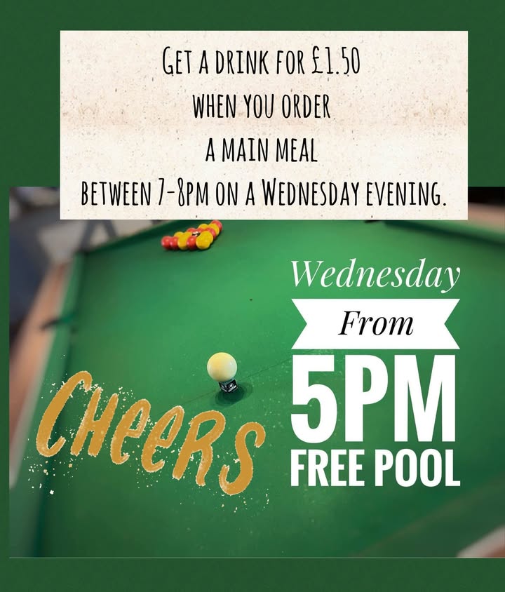 Get a drink for £1.50 when you order a main meal between 7-8pm on a Wednesday evening.