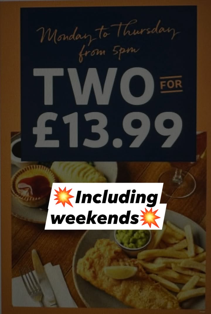 The 2 for £13.99 offer has been extended to all day every day until the 1st of feb xxx