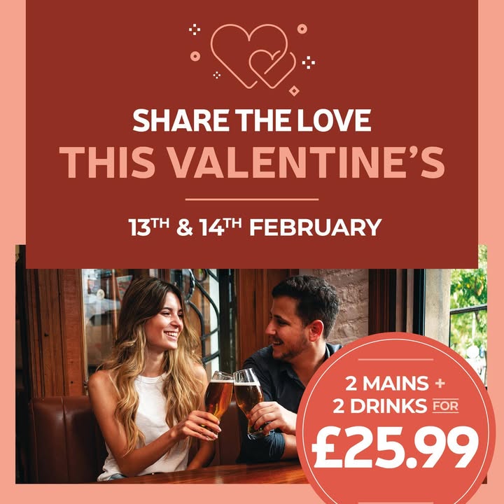 Treat yourselves this Valentine’s Day with Two Mains & Two Drinks for £25.99